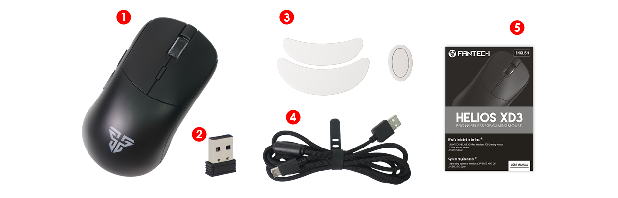 Helios XD3 is designed with dual support for Wireless and wired connectivity. Adapt the mouse to your style!