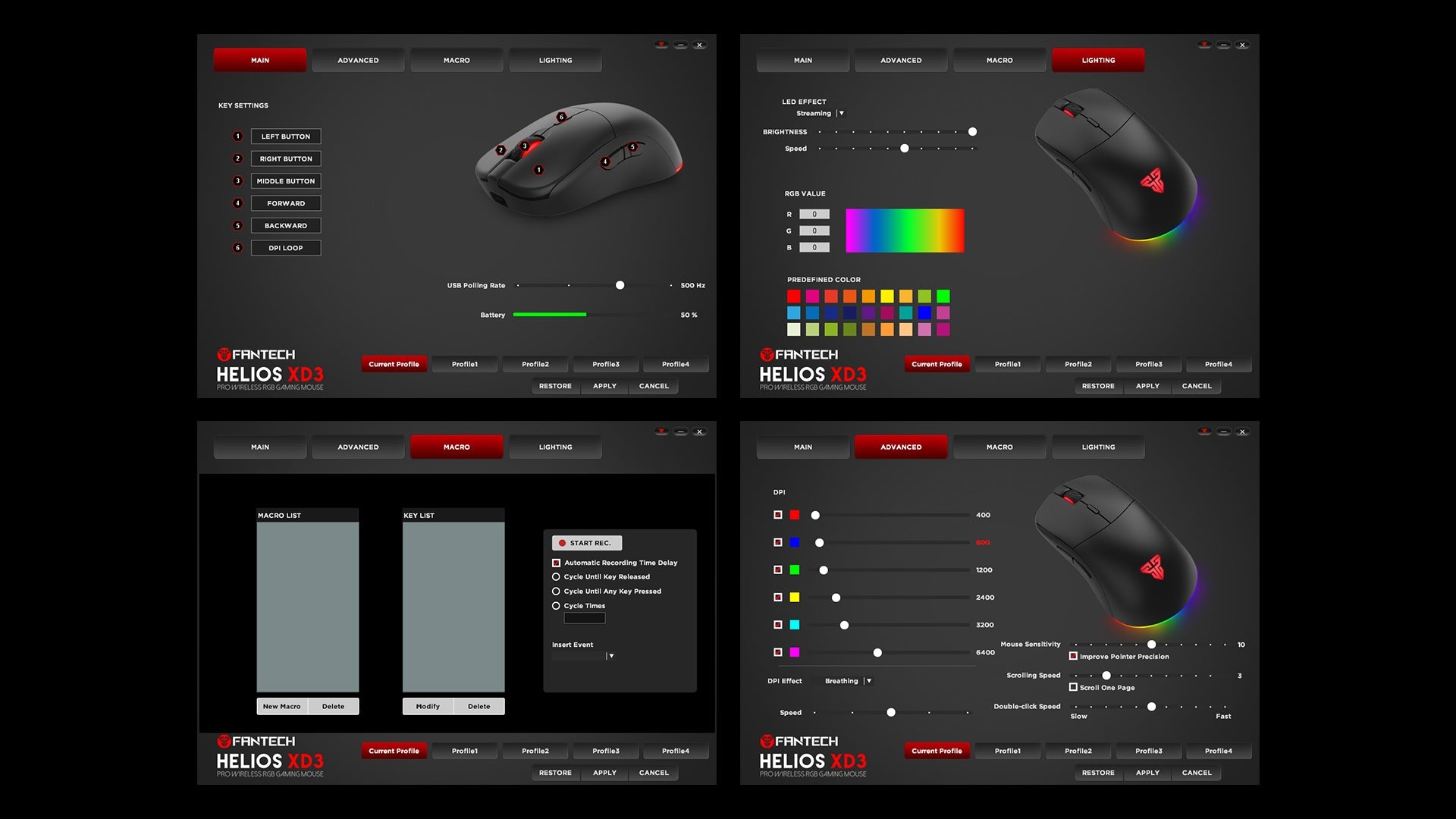 Fantech HELIOS XD3 designed with 4 RGB spectrum modes, You can set it to RGB colors that you like, to enchance your gaming experience.