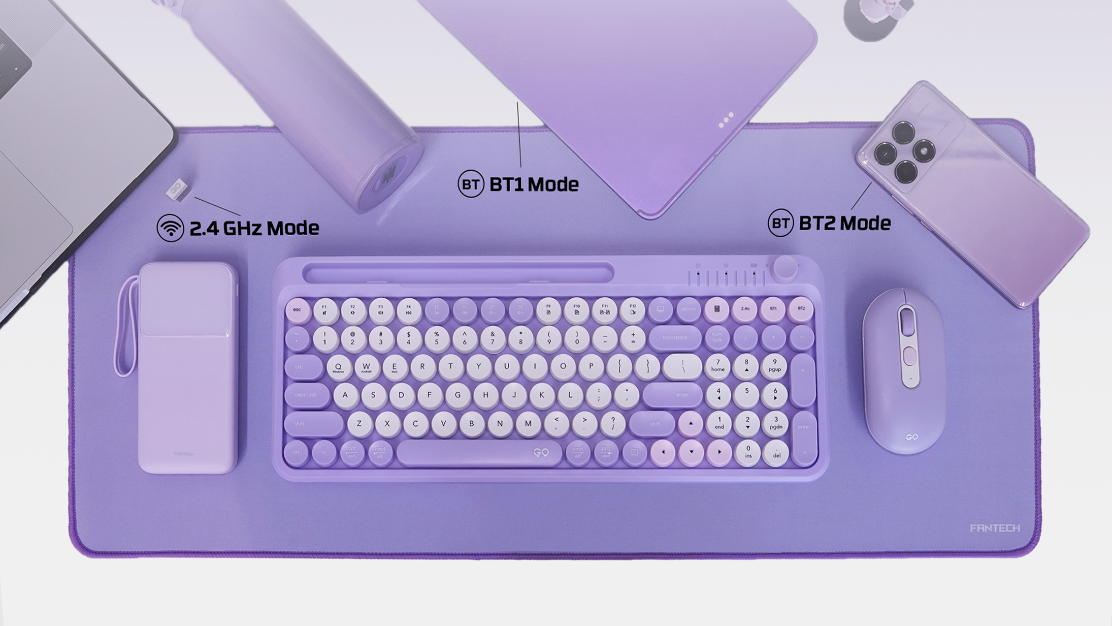 Seamlessly switch typing between your computer, phone, and tablet with a single button. Connect up to 3 devices using either 2.4Ghz for one device or BT for two devices