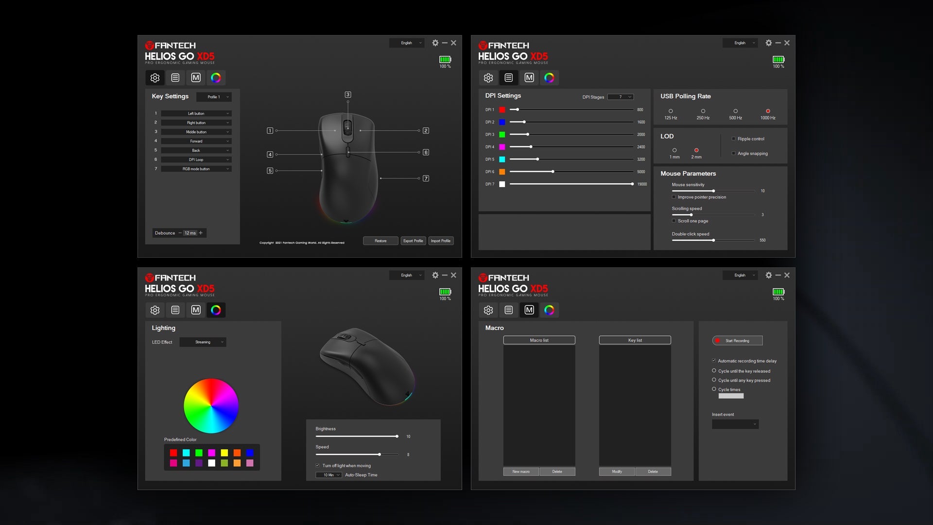 Fantech Helios Go is an ergonomic shape, based off of our interpretation of the IE3.0 (Intellimouse), while being scaled down to meet the demands of the industry for weight, and grip styles. Helios Go supports large hands (fingertip grip), and small to medium hands (all grips).
